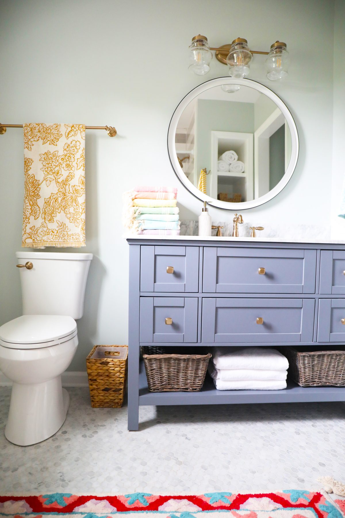 • Sherwin Williams Glimmer – for a soft blue that looks oh so good! {seen in the bathroom with the towels}
